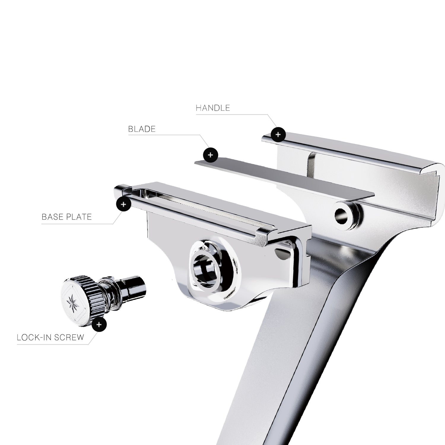 One of the key attributes of our razors is the generous contact area between the handle and base plate, crucial for blade stability. This design prevents blade vibration during shaving, ensuring a chatter-free experience and delivering the utmost smoothness in every shave.